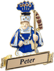 Anstecker für den Prinzen mit jeder beliebigen Farbkombination, Gravur Ihres Wunschtextes und Pinverschluss.