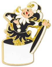 Preiswerter Anstecker in 5 verschiedenen Farbkombinationen mit Pinverschluss.