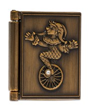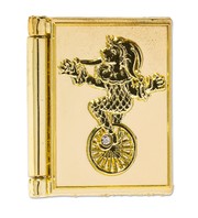 NEU: Besonders preiswertes, klappbares Andenken-Büchlein zum Anstecken in Altgold mit Magnetverschluss und Schmuckstein.