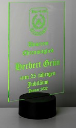 NEU: Moderne Design-Trophy aus Acryl mit Wunschfarbe, Karnevalsmotiv und individueller Beschriftung.