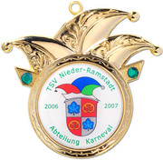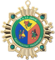 Klassischer Karnevalsorden in 4 verschiedenen Farben mit Band oder Kordel in Wunschfarbe, individueller Beschriftung, Vereinswappen und Schmucksteinen in 4 verschiedenen Farben.