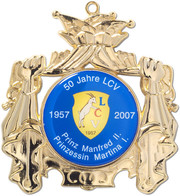 Klassischer Karnevalsorden in 4 verschiedenen Farben mit Band oder Kordel in Wunschfarbe, individueller Beschriftung und Vereinswappen.