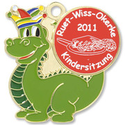 Preisgünstiger Karnevalsorden für Kinder in den abgebildeten Farben mit Band oder Kordel in Wunschfarbe, individueller Beschriftung und Vereinswappen.
